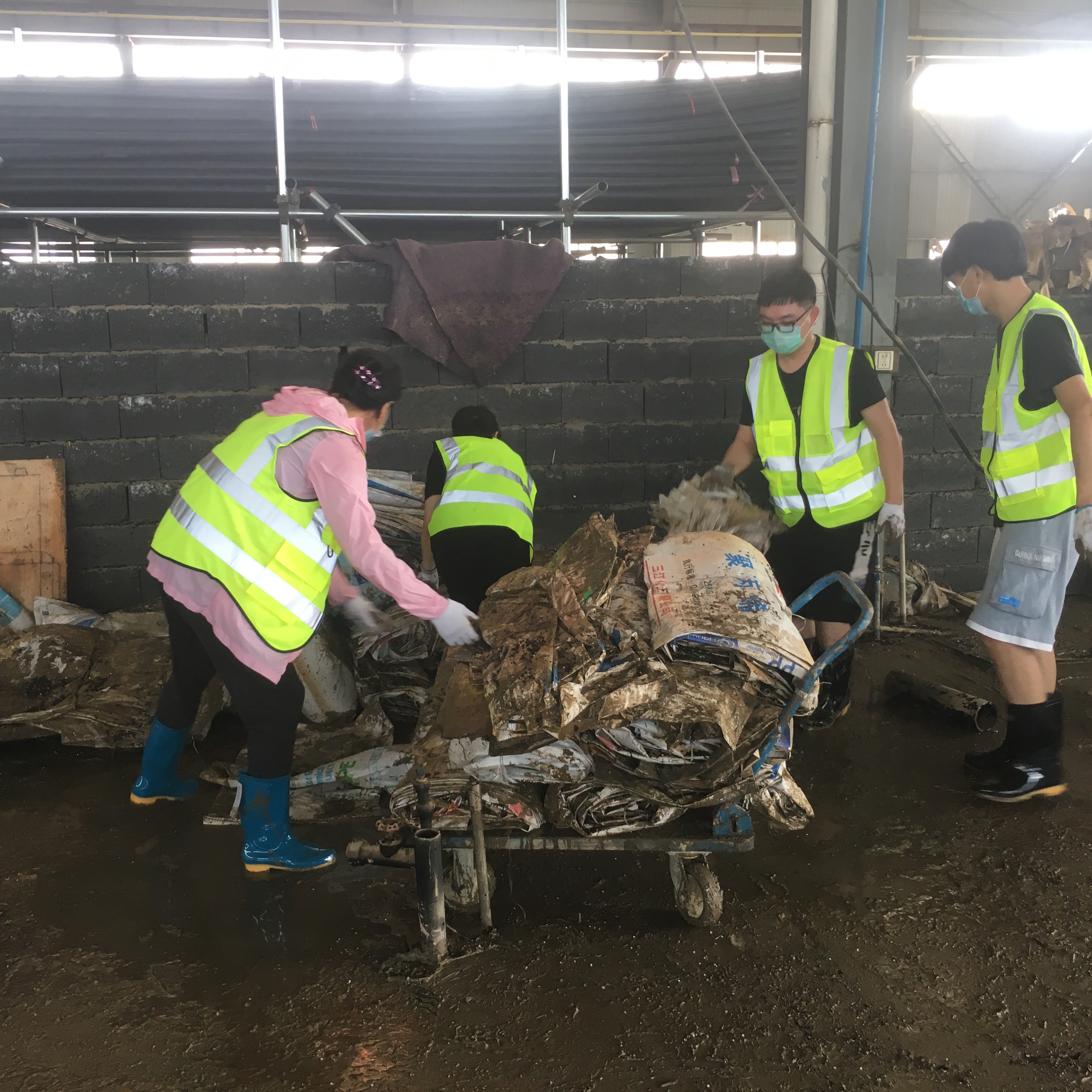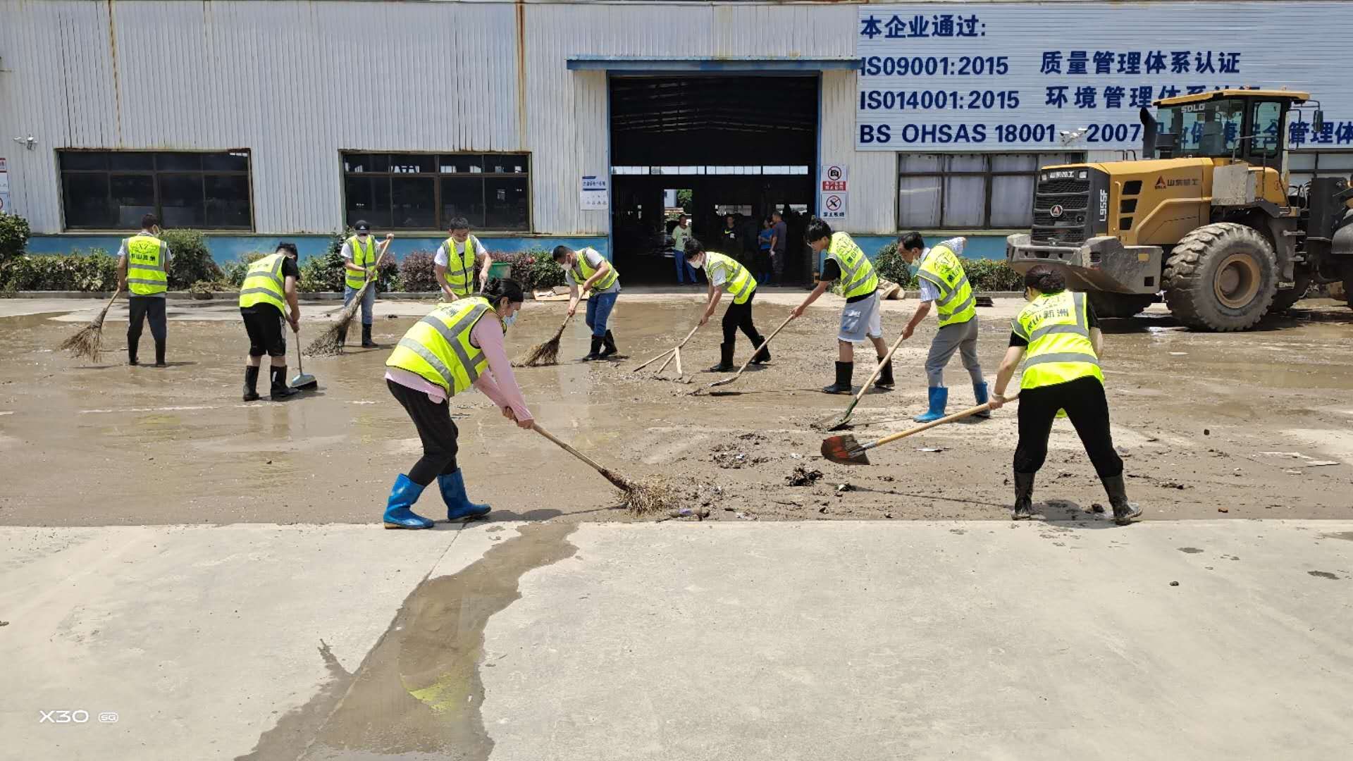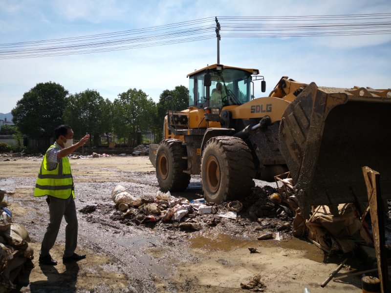 上午8時(shí)許,黃山新洲公司黨員、入黨積極分子、抗洪搶險(xiǎn)志愿者開(kāi)著鏟車(chē)、灑水車(chē)從屯溪區(qū)出發(fā)到達(dá)歙縣經(jīng)開(kāi)區(qū)受澇嚴(yán)重的黃山順濤管業(yè)有限公司進(jìn)行衛(wèi)生清掃,先清理垃圾及淤泥,再進(jìn)行集中消毒消殺。烈日炎炎,新洲支部的黨員志愿者們個(gè)個(gè)不怕臟,不怕累,頂著烈日,揮汗如雨。通過(guò)一個(gè)上午的勞動(dòng),在人機(jī)配合下,掃除了垃圾,清除了表面泥土,受災(zāi)企業(yè)的工作環(huán)境煥然一新。