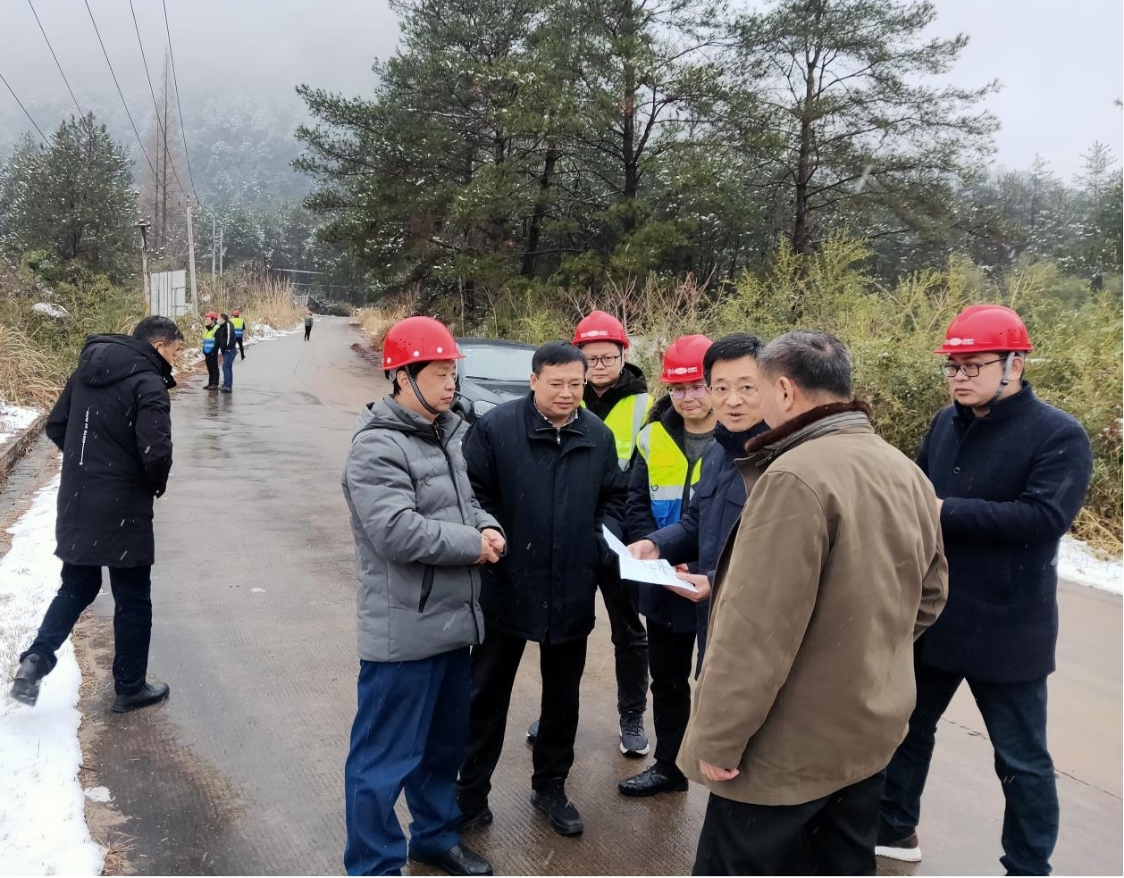 下午16時,天空飄著鵝毛般大雪,黃山風景區(qū)黨工委副書記、管委會徐立秋副主任率隊蒞臨本項目施工現(xiàn)場,實地考察指導項目復工建設。集團公司總經(jīng)理李利成、副總經(jīng)理張遠林全程陪同接待。在聽取黃山東大門綜合服務中心項目疫情防控、復工復產(chǎn)等相關(guān)工作匯報后,指出:一、疫情防控工作仍然是當前重要的工作,是企業(yè)、項目有序復工復產(chǎn)、保持經(jīng)濟平穩(wěn)運行的前提。企業(yè)、項目部要進一步落實主體責任,確保各項防控措施落實到位;二、黃山東大門綜合服務中心項目乃是黃山風景區(qū)的“一號工程”,參建各方要始終保持高度重視,要加快進度,保證質(zhì)量,制定不利天氣的施工防控預案,配足各方資源進場施工,在確保工程質(zhì)量和施工安全的前提下,加快施工進度,把該項目建設成為精品工程、示范工程、安全工程。確保施工合同約定的各項目標實現(xiàn)。三、合理布局、綜合謀劃,把項目建設和企業(yè)品牌發(fā)展相結(jié)合,發(fā)揮出本地企業(yè)的優(yōu)勢,打造企業(yè)品牌形象。
