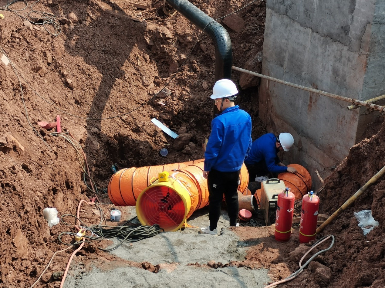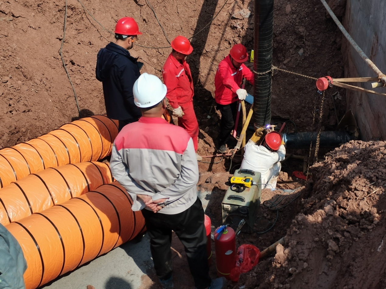 動(dòng)火連頭焊接施工現(xiàn)場