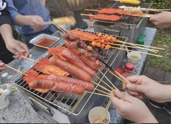 傍晚時刻,房車營地前煙火味十足,烤肉的味道香飄十里,大家分工合作,一起動手,體驗(yàn)了“自己動手豐衣足食”的樂趣。面對豐富的食物,大家烤得熱火朝天,吃得不亦樂乎!歡聲笑語連成片,其樂融融。
