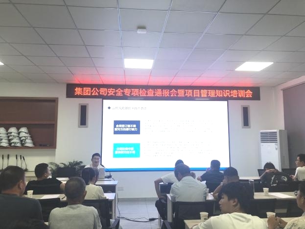為積極防范各類(lèi)事故發(fā)生,強(qiáng)化風(fēng)險(xiǎn)意識(shí),確保各在建項(xiàng)目施工安全穩(wěn)定,集團(tuán)公司于7月下旬組織開(kāi)展了安全生產(chǎn)專(zhuān)項(xiàng)檢查,并于2023年8月19日在綠洲公司二樓會(huì)議室召開(kāi)了關(guān)于安全專(zhuān)項(xiàng)檢查通報(bào)會(huì)暨項(xiàng)目管理知識(shí)培訓(xùn)會(huì)。會(huì)議由集團(tuán)公司分管安全副總經(jīng)理張遠(yuǎn)林主持,黨支部書(shū)記李惠明、法務(wù)部、安全部、財(cái)務(wù)部、綜合辦公室、人力資源部、工程部及項(xiàng)目管理人員共計(jì)41人參會(huì)。