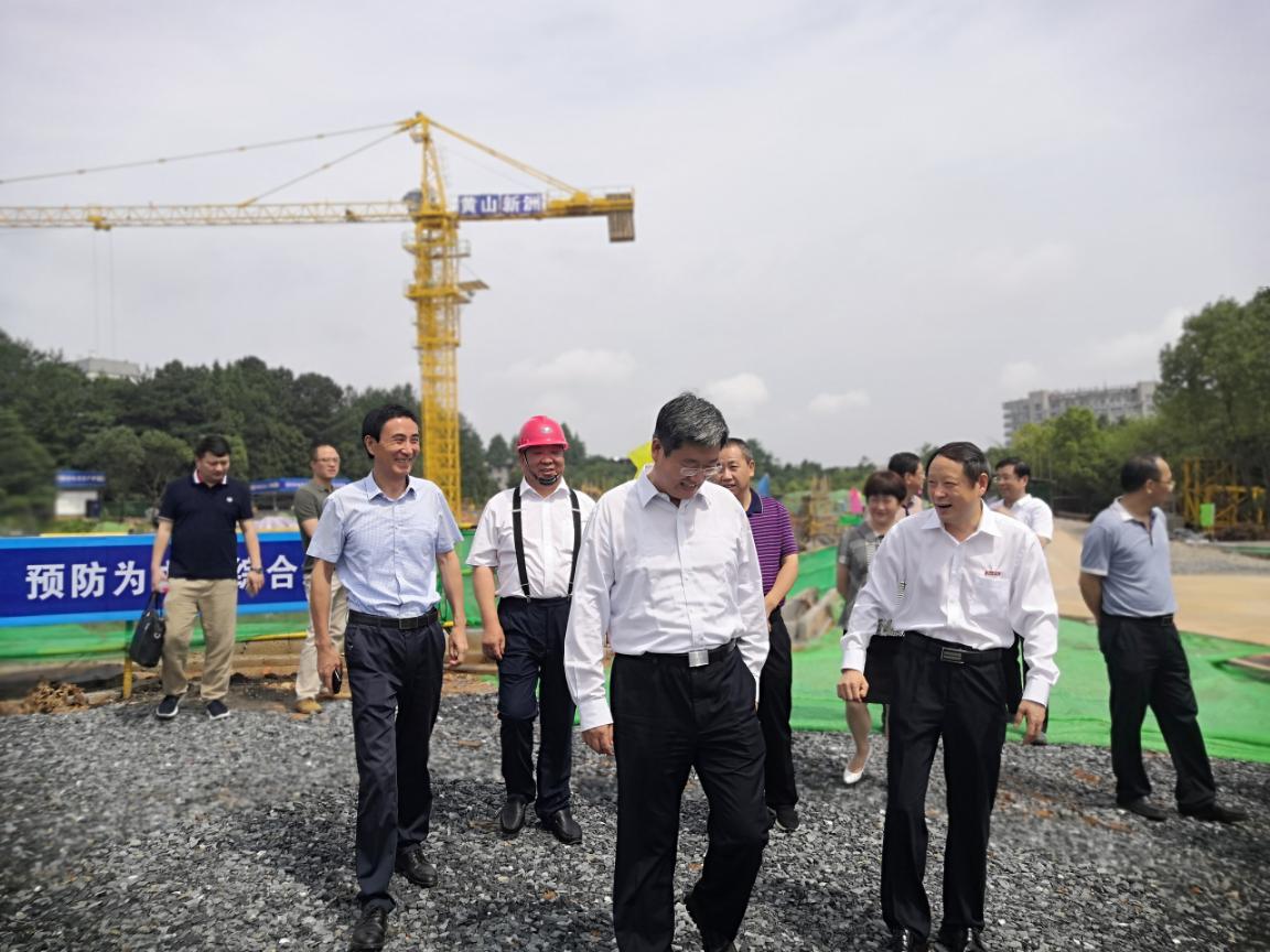 7月2日上午,黃山市市長孫勇、副市長程紅一行來我公司承建的黃山學(xué)院實(shí)習(xí)實(shí)訓(xùn)中心項(xiàng)目調(diào)研。校黨委書記汪楓,黨委副書記、校長李鐵范,校黨委委員、副校長張德學(xué)、集團(tuán)公司董事長李文武等陪同參加并對項(xiàng)目的總體情況作了簡要匯報。
