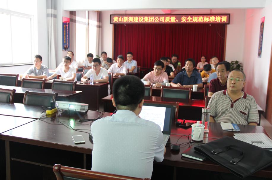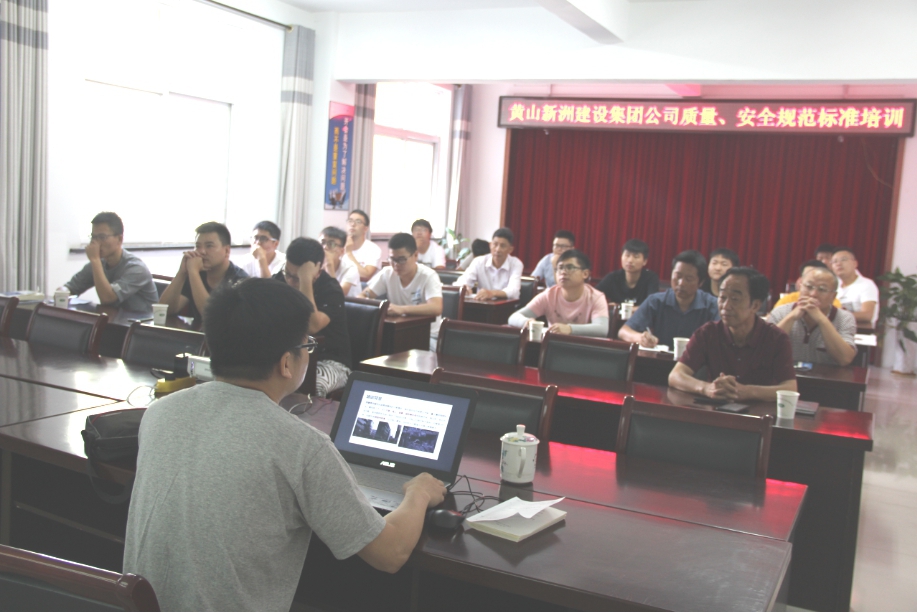 為提升項目管理人員的質(zhì)量、安全意識,規(guī)范項目質(zhì)量、安全管理工作,2019年7月20日,集團(tuán)人力資源部組織開展了質(zhì)量、安全規(guī)范、標(biāo)準(zhǔn)的培訓(xùn)。此次培訓(xùn)有幸邀請了黃山學(xué)院的黃劍、曹海教授擔(dān)任了培訓(xùn)講師。集團(tuán)公司工程部、安全環(huán)保部及技術(shù)部管理人員參加了此次培訓(xùn)。