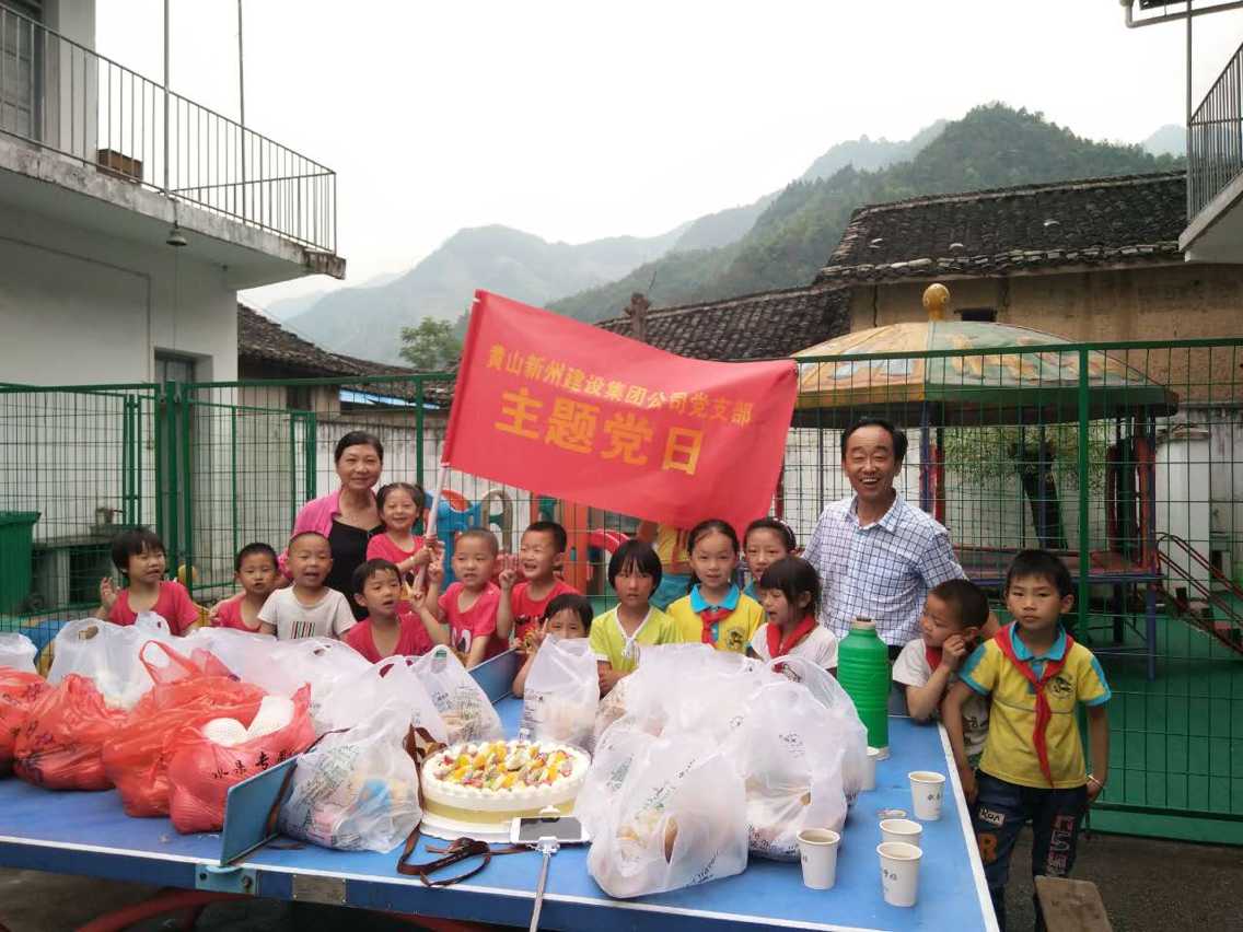2017年6月1日,黃山新洲建設集團有限公司黨支部書記李惠明一行帶上蛋糕、水果來到偏辟山區(qū)臨家塢小學,看望慰問了學??蓯鄣男∨笥?,給孩子們送上節(jié)日的祝福,祝臨家塢小學全體同學六一兒童節(jié)快樂,并向瀝血培育祖國花朵的老師致以崇高的敬意。